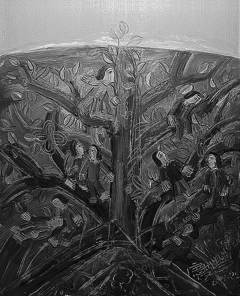 在郭庆丰的油画中,我们看到了中国油画的另一种可能:它不必依附于西方的叙事逻辑,也不必困于地域的狭窄框架,而是可以从民间与传统文化的土壤中生长出独特的精神气象。那些充满“玄外之音”的画面,既是陕北文化的灵魂肖像,也是当代人对精神家园的集体回望。当艺术穿透地域的表象抵达文化的内核,当媒介突破中西的壁垒实现美学的融合,郭庆丰的创作便成为一座桥梁——让古老的黄河文化在当代艺术语境中焕发新生,让中国油画在全球化浪潮中找到属于自己的精神坐标。这种扎根传统又超越传统、立足地域又胸怀天下的艺术实践,正是其作品最动人心魄的力量所在。