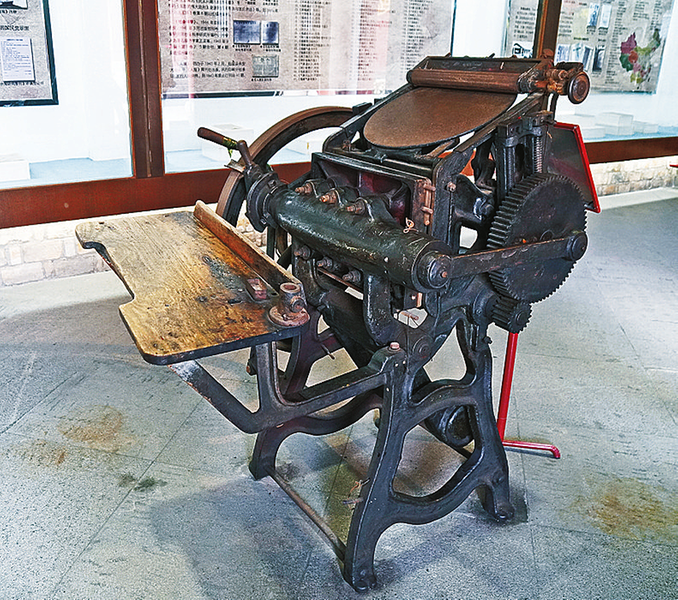 抗战时期,改进出版社使用的手摇踏板印刷机。(永安博物馆收藏)