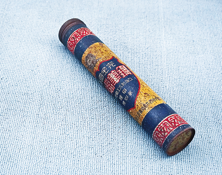 抗战时期,永安使用的蜡纸筒。(永安博物馆收藏)