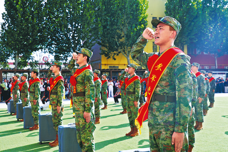 胸戴红花 奔赴军营