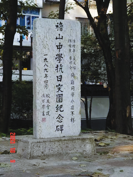 烈日灼灼,青灰色的纪念碑静静矗立在稽山中学校园里,“稽山中学抗日突围纪念碑”11个大字在阳光下格外醒目。这座纪念碑,记录着一段可歌可泣的抗战往事。