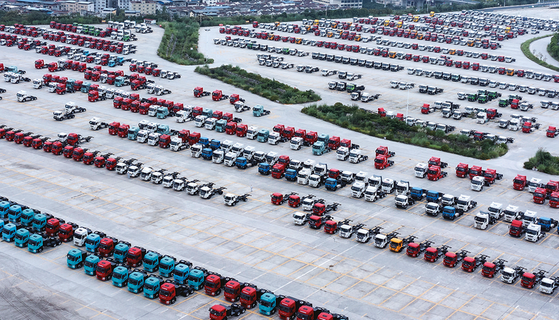 ● 在东风商用车有限公司交付中心,各类东风卡车整齐停放 记者 孙文珍 通讯员 闵波 罗毅 刘爱理