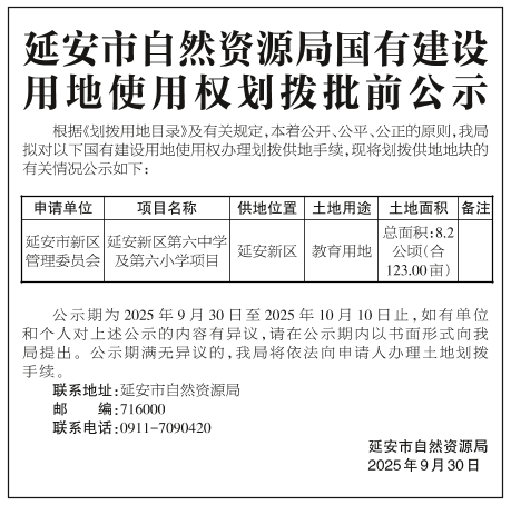 延安市自然资源局国有建设用地使用权划拨批前公示