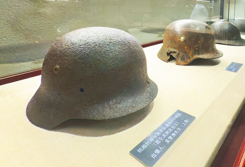 ▲ 在昆仑关战役博物馆展出的抗战中国军队钢盔(昆仑关附近出土)。