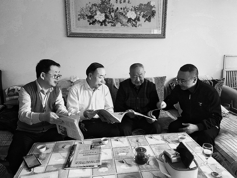 ● 赵生波(左二)为支部党员送学上门 记者 叶树峰
