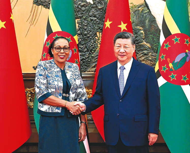 习近平指出,多米尼克是中国在加勒比地区的好朋友、好伙伴。建交20多年来,两国始终相互尊重、平等相待,政治互信不断巩固,各领域交流合作蓬勃开展,人民友谊日益深厚,树立了不同社会制度、不同大小国家间友好合作的典范。中方愿同多方一道,推动两国关系迈向更高水平,更好造福两国人民。
