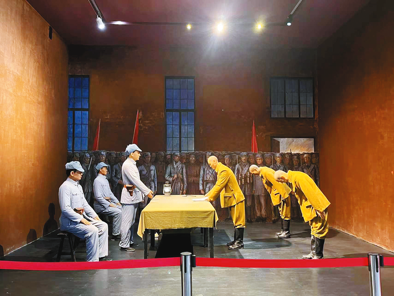 侵华日军向新四军投降处旧址展厅中复原的受降仪式场景。