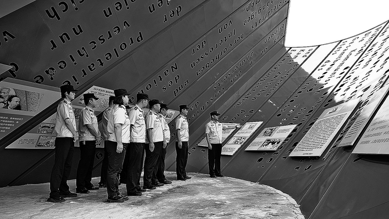 ● 南泥湾派出所民辅警在党徽广场接受红色教育 通讯员 高伟 摄 刘海峰 通讯员 高鹏 王一凡