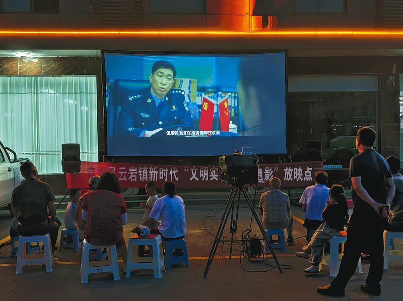 一场场电影不仅丰富了群众夜间文化生活,更在寓教于乐中播撒文明种子:反诈知识通过案例宣讲深入人心,移风易俗借助互动问答融入生活,红色故事透过银幕点燃信仰,新时代文明实践的光芒正照亮每个放映站点的夜晚,沁润着百姓的心田。