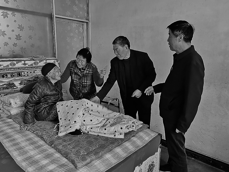 薛根堂(右一)走村入户慰问百岁老人 记者 叶树峰 摄 记者 叶树峰
