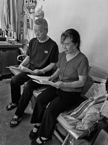 李锦萍(右)为支部党员送学上门 记者 叶树峰 摄