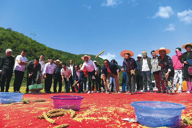 五里桥村村民在丰收节上参加趣味比赛