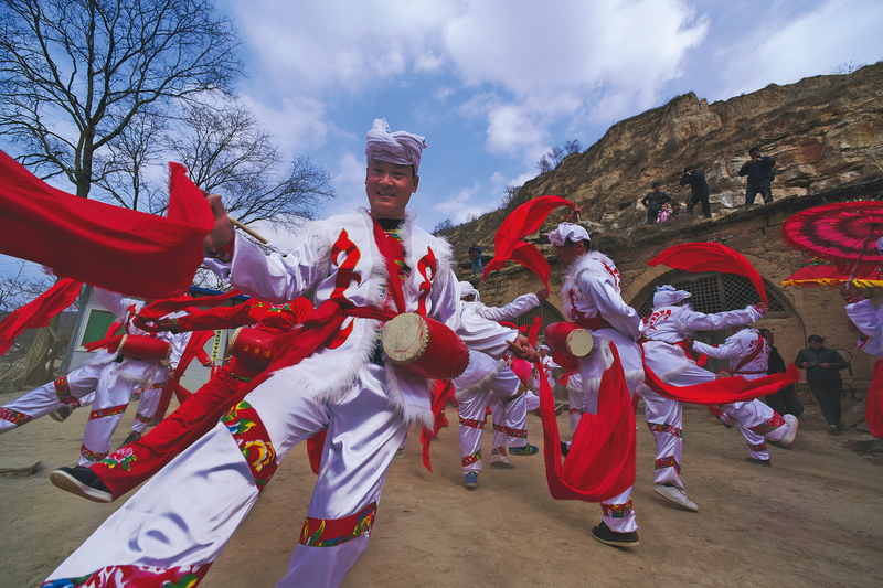 ● 甘泉县下寺湾镇龙咀沟村村民在传统节庆活动中扭秧歌