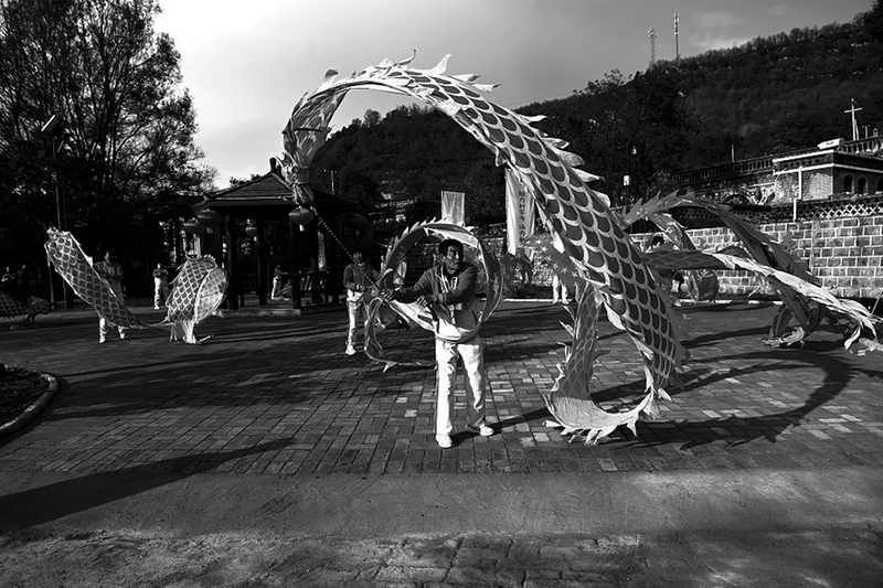 ● 佛道坪村村民在广场舞龙 记者 祁小军 摄