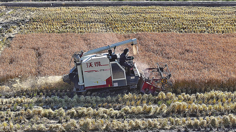● 水稻收割现场 王静 摄 本报讯(记者 王静 赵坤 通讯员 刘旭)11月1日,素有“陕北好江南”美誉的南泥湾迎来水稻丰收季。千亩稻田被金色浸染,空气中浮动着清甜的稻香,收割机穿梭轰鸣,黄土高原的沟壑间铺展开一幅繁忙而喜悦的丰收画卷。尽管前期遭遇不利天气影响,但依托新品种与新技术推广,今年南泥湾水稻仍实现稳产丰收,续写着“自己动手、丰衣足食”的时代新篇。