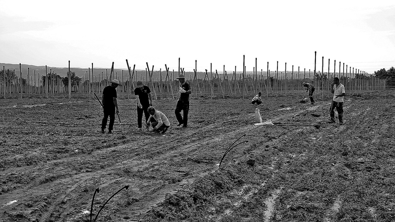 ● 在专家指导下,堡定村果农们正在测量“株距” 通讯员 李文振 摄 通讯员 李文振 记者 贺秋平