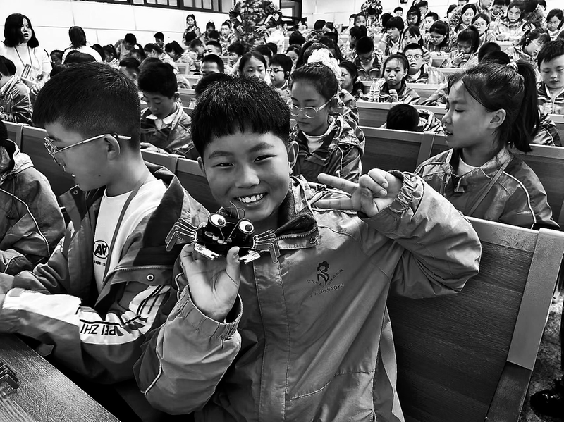 ● 学生展示制作的仿真机器人 李佩芝 摄 本报讯(记者 樊江江)近日,延安育英中学附属小学六年级全体师生走进西安博物院与西安交通大学,开展了一场以“千年古都 星火相传 交大筑梦 秦章幻彩”为主题的研学活动。