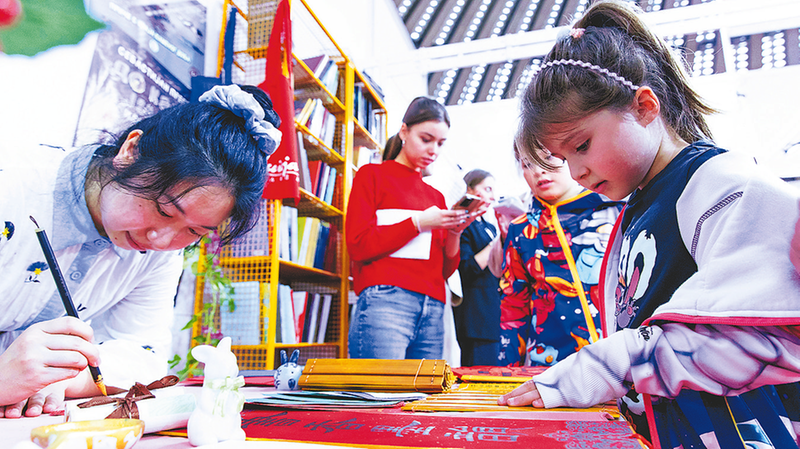 ● 10月26日,在塞尔维亚首都贝尔格莱德,小朋友在贝尔格莱德国际书展的“我在塞尔维亚阅读中国”图书专区体验中国文化。 新华社发 王韡 摄 塞尔维亚首都贝尔格莱德已进入深秋,落叶铺地,阳光散射于萨瓦河泛起金波……在刚刚闭幕的贝尔格莱德国际书展期间,中小学生、青年人、牵着孩童的年轻夫妻、老年人,从四面八方汇聚在贝尔格莱德会展中心,共赴一场一年一届的国际阅读盛会。