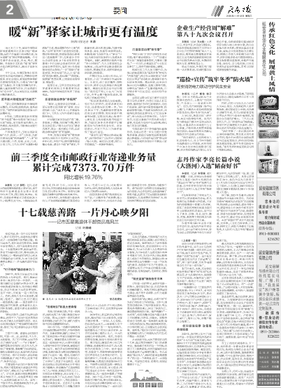 前三季度全市邮政行业寄递业务量累计完成7373.70万件