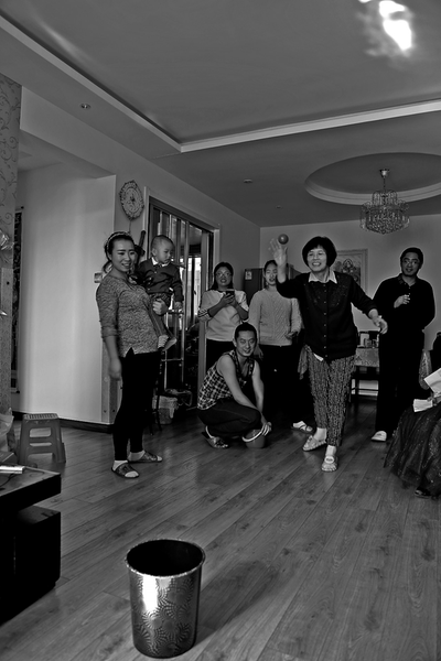 ● 张秀云(右二)与家人们一起玩游戏 受访者提供 记者 叶树峰