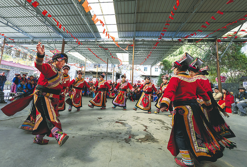 11月18日,在茂县赤不苏镇,当地群众在跳萨朗舞。