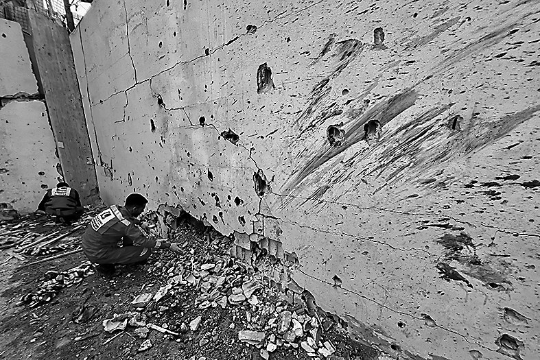 11月19日,救援人员在黎巴嫩西南部沿海城市赛达附近的遇袭巴勒斯坦难民营工作。