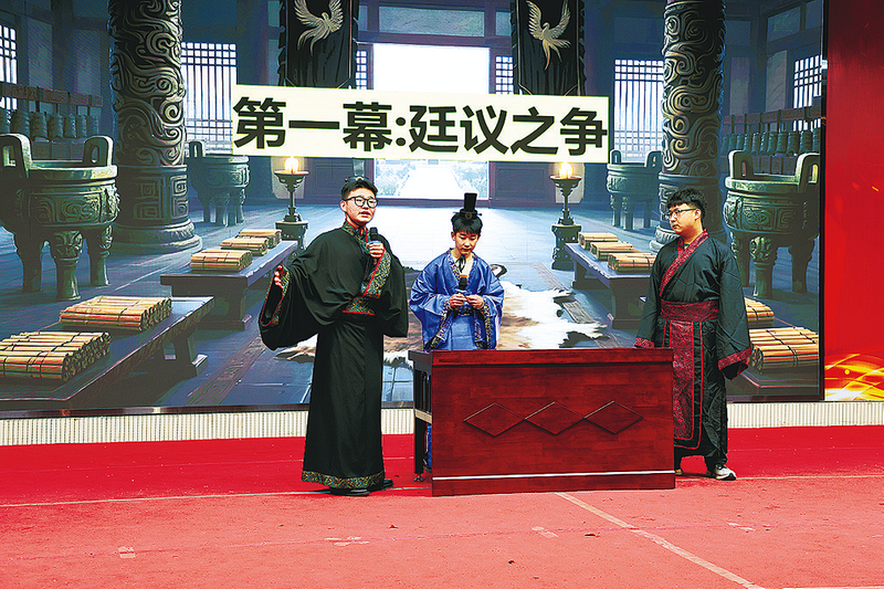 活动中,“身临其境”的情景剧板块以“改变世界的瞬间”和“历史的见证者”为创作主题,要求剧本创作必须建立在扎实的史料基础之上。从关键事件的选择、人物语言的设定到服装道具的运用,提供明确的历史依据,在保证“大事不虚”的前提下,适当进行艺术加工。《徙木立信》《千古一策:郡县与分封之争》《一二·九的怒吼》等精彩剧目的上演,展现了同学们对历史题材的深入理解。
