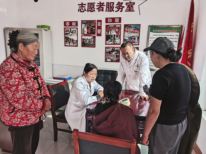 ● 志愿者为村民测量血压血糖 通讯员 沙江 摄 记者 雷荣 李星棋 通讯员 沙江