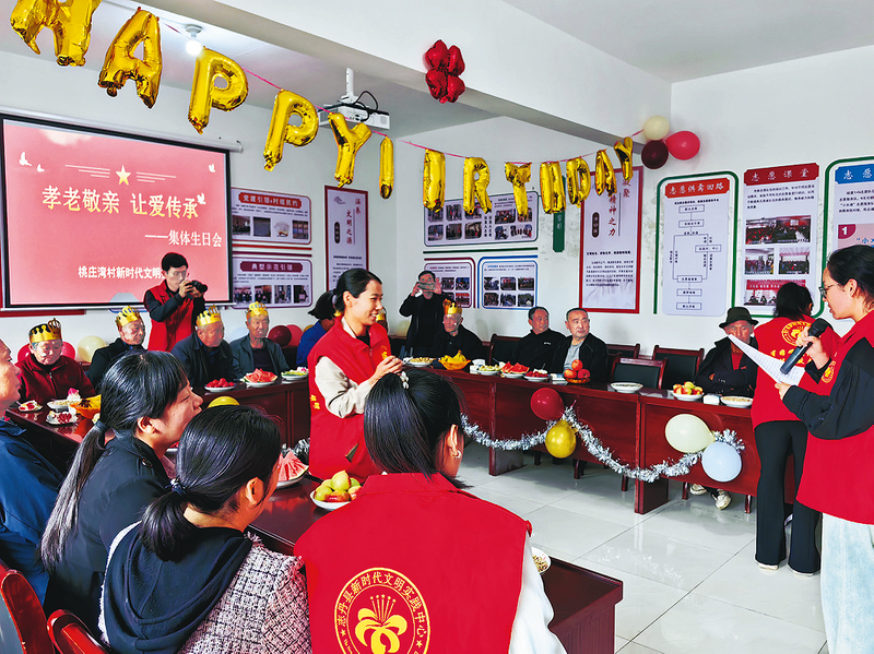 ● 集体生日暖人心 通讯员沙江摄 陕北初冬的清晨,薄雾尚未散尽,志丹县双河镇桃庄湾村新时代文明实践站里已响起欢快的陕北民歌,一场以“孝老敬亲 让爱传承”为主题的集体生日会在此举行。