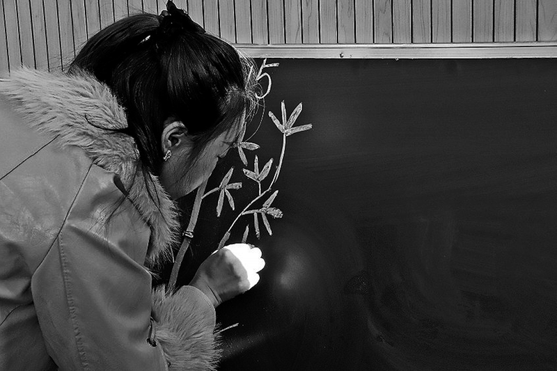 ● 老师们观看粉笔作品 高浩楠 摄