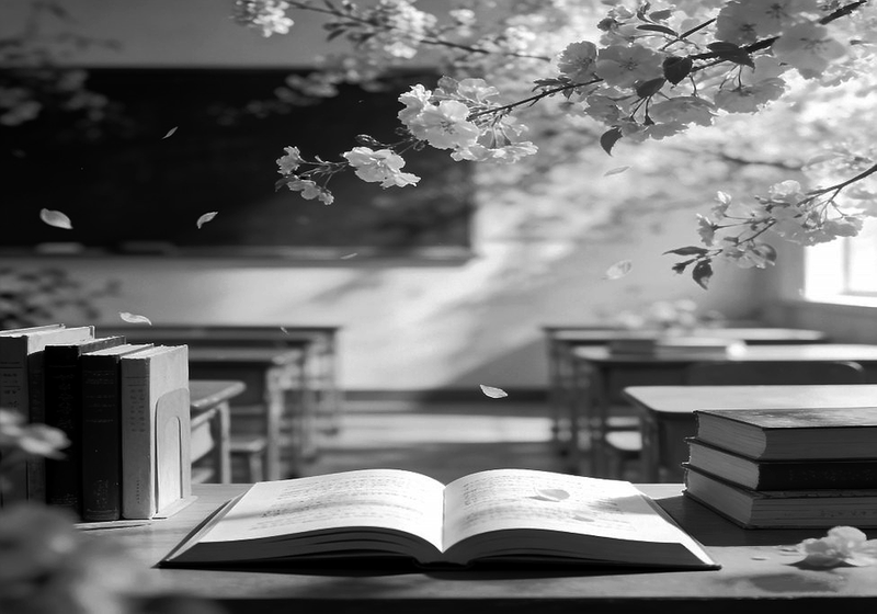 教室中书声琅琅,孩子们摇头晃脑地读着一篇又一篇诗词。老师在诗声中走进教室,窗外阳光伴随着尘埃飘进教室,斜射在绿梢上,绿叶上还留有着几颗晶莹的水滴。老师用轻柔的声音说道:“同学们,我们今天学的是第二十三课。”我的老师她总是很温柔,她从来不大声训斥我们,只会细心地讲给我们各种知识,大家都很尊敬和喜爱她。她说语文就像一篇散文,形散神不散,优美悠扬,令人回味无穷;她说语文就像一首诗词,节奏轻快,韵律优美绵长。