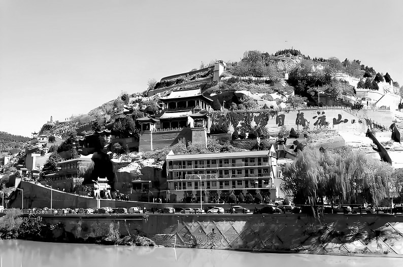 接着向上走,在最高处有一座琉璃塔,它色彩艳丽,图案精致,塔顶上的宝葫芦造型新奇,风吹过,还会有声音在耳旁飘荡。姑姑说琉璃塔由外县移迁而来,多为保护。它不仅是清凉山的特景标志,更见证了延安的变迁与发展。
