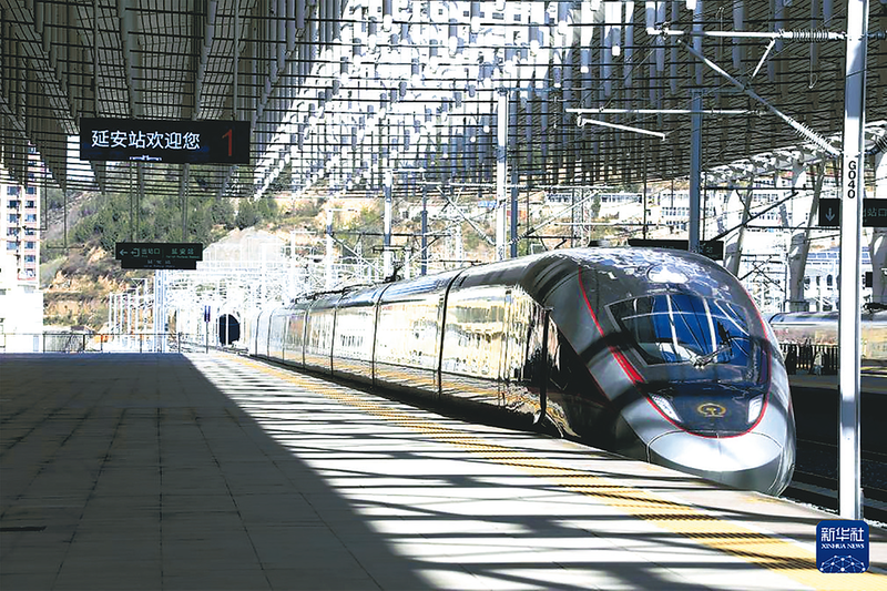 ● 11月17日,一列试验动车组抵达延安站 新华社发