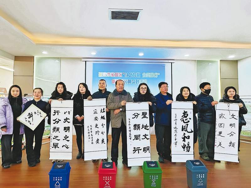 活动现场气氛热烈,社区居民积极参与。区城管局工作人员进行了生动细致的垃圾分类知识宣讲,强化居民的分类意识;区文联代表宣读了倡议书,号召广大文艺工作者和社区居民携手践行绿色生活;区书法协会艺术家们现场挥毫,创作以“垃圾分类”为主题的书法作品,并赠予社区群众;民众剧团的演员以一曲朗朗上口的《垃圾分类歌》,用传统艺术形式唱响分类新风,赢得阵阵掌声。活动还设置了书法创作体验与垃圾分类互动游戏环节,深受居民欢迎。