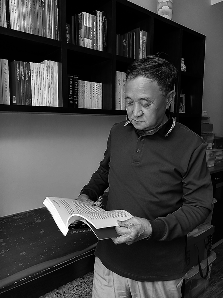 ● 赵金龙在书架寻找学习书籍 受访者提供 记者 叶树峰