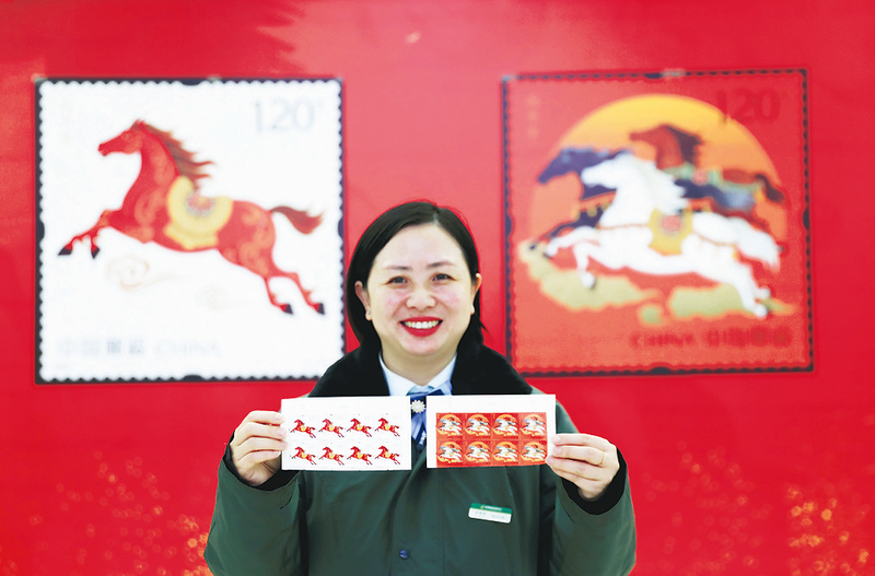 1月5日,在安徽安庆市一邮政网点,工作人员展示《丙午年》特种邮票。