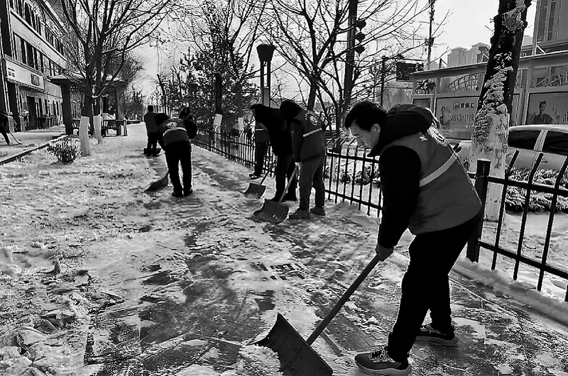 清晨时分,身着“红马甲”的志愿者们顶寒风、冒严寒,以动制“冻”,奔赴新区各重点路段、居民区周边开展除冰雪保畅通行动。大家分工明确、团结协作、配合默契,手持铁锹、雪铲等工具,弯腰挥铲、奋力清扫,从路面浮雪到隐藏冰面,逐一清理整治,全力保障道路通行安全。尽管天气严寒,双手冻得通红,但志愿者们手上的动作从未停歇,忙碌的身影穿梭在皑皑白雪中,构成了冬日里一道靓丽又暖心的风景线。