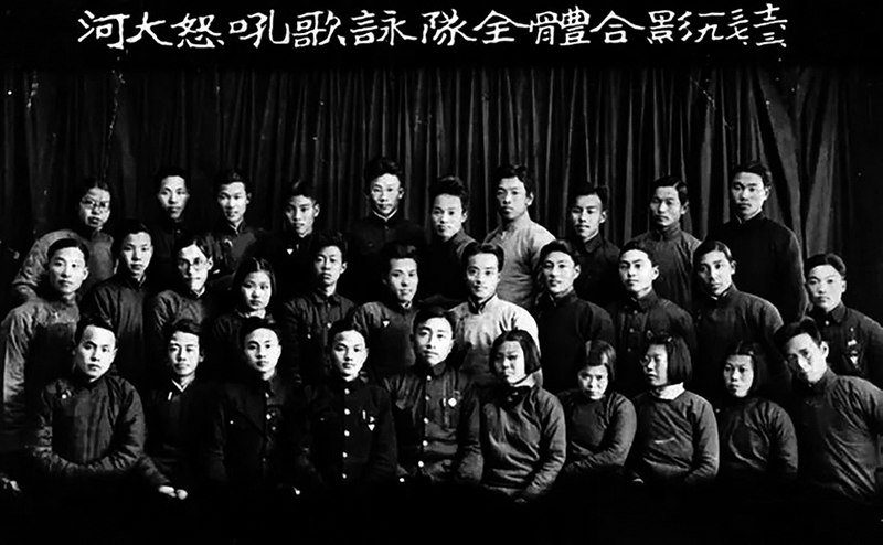 “ 七七事变”爆发后,马可发起并组织了河南大学“怒吼歌咏队”,编选教唱抗日歌曲。“1937年9月初,马可和‘怒吼歌咏队’演出归来,刚进校门就听说他敬慕已久的作曲家冼星海随‘上海抗敌演剧二队’到了学校大礼堂。”陈军说,在河南大学期间,冼星海还亲自指点过马可作词作曲的《保卫我们的平津》。