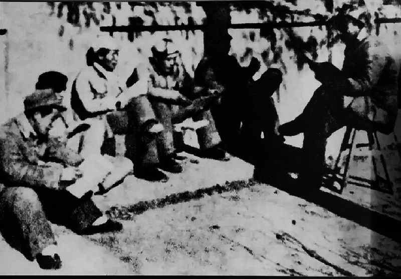 ● 1942年,马可给鲁艺音乐系学员讲课 1个月后,在陕甘宁边区民众剧团赴各地巡回演出的队伍中,总有一个一米八的大高个扛着剧团的大旗在队伍前头走,那就是被派去剧团的马可。他的女儿马海星说:“那时候的父亲草鞋磨破了,就光着脚从这个村走到那个村,冒着雨仍然充满着热情,现在我们都不敢想,觉得不可思议。”