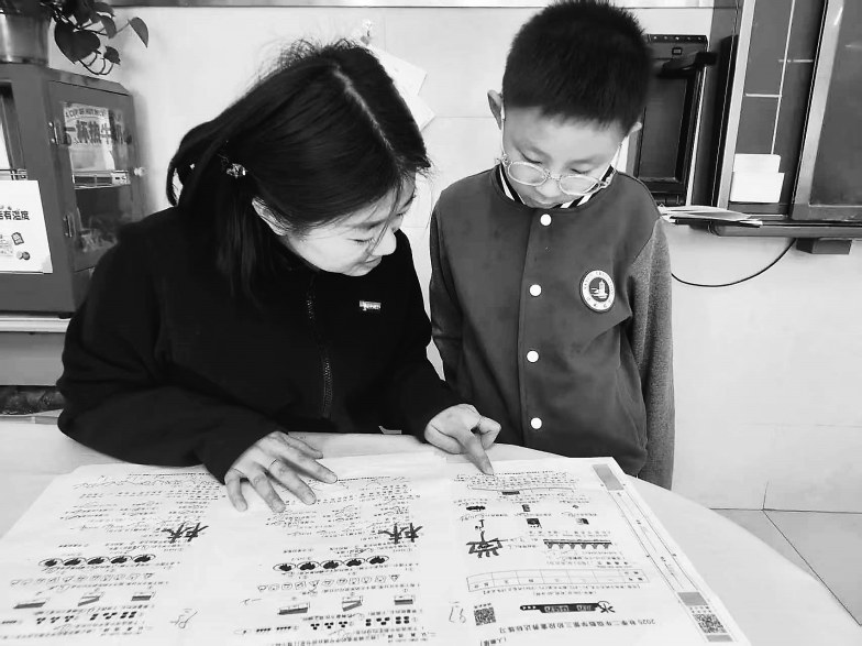 ● 赵亚为学生讲解试题 通讯员 张玉玉 摄 在新区培文小学,就有这样一位老师:每天清晨,当城市尚未完全苏醒,她已站在校门口迎接孩子们;深夜,当教室灯火渐熄,她办公室的灯却仍亮着,或批改作业,或记录哪个孩子需要多加关注。她就是二年级(5)班班主任赵亚,被孩子们亲切地称为“校园妈妈”。