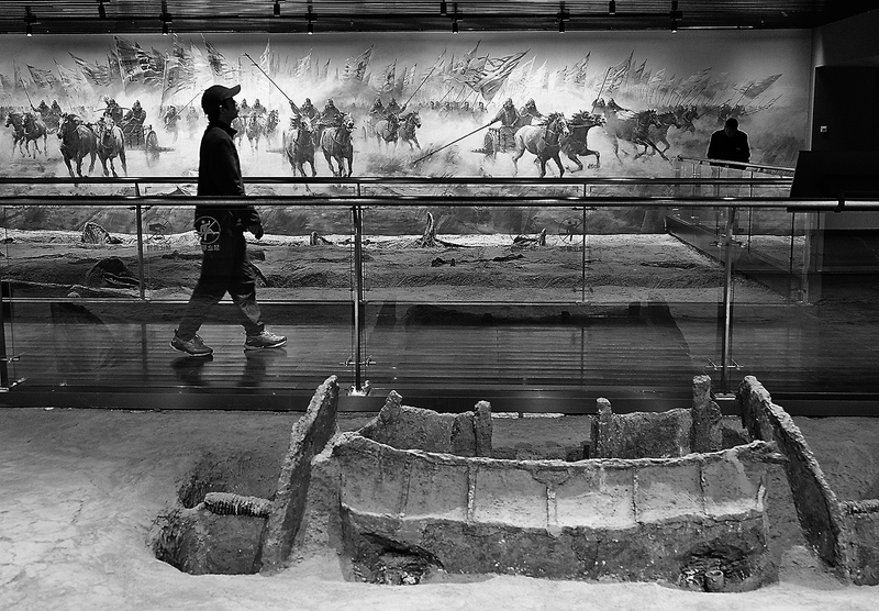2026年1月20日,参观者在“湖北出土先秦车马兵器”展上参观。