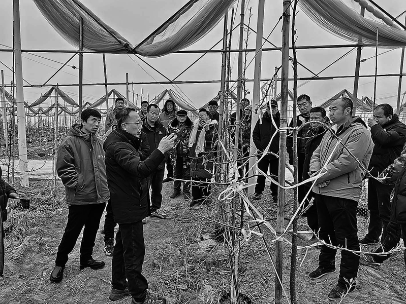 1月25日上午,“新品种苹果园精细化管理技术培训会”在宝塔区桥沟街道办野狐子沟村李志坚果园、烟洞沟村马文昌果园举办。活动特邀白水县果树专家王小军(高级农艺师)主讲“新品种苹果园管理及冬季修剪技术”,旨在系统提升果农对新品种苹果园的精细化管理能力,助力苹果产业技术升级与优质果品培育。 记者 王静 摄