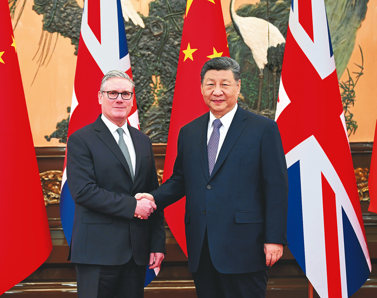 习近平强调,互信是国与国关系行稳致远的基础。中国始终坚持走和平发展道路,从未主动挑起过一场战争,从未侵占过别国一寸土地,中国无论怎样发展壮大都不会对其他国家构成威胁。中国的文化传统是“以和为贵”,追求的是“和而不同”。中英经贸合作的本质是互利共赢。今年是中国“十五五”开局之年,双方要拓展教育、医疗、金融、服务业互利合作,开展人工智能、生物科学、新能源和低碳技术等领域联合研究和产业转化,实现共同发展繁荣。希望英方为中国企业提供公平、公正、非歧视的营商环境。中英都是文化大国,都为人类发展进步作出重要贡献。双方要密切人文交流,进一步便利人员往来。欢迎英国政府、议会、地方各界多来中国参访,增加对中国全面、客观、正确的认知。中方愿积极考虑对英实施单方面免签。