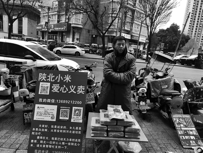 只因这一声爸爸,王延龙放下了延安的小生意,来到西安。从卖柿饼到卖小米,从天蒙蒙亮到灯火阑珊,睡着朋友家的沙发,吃着一顿不到两块钱的饭,只盼能把每一分钱都用在嘉嘉的治疗上。