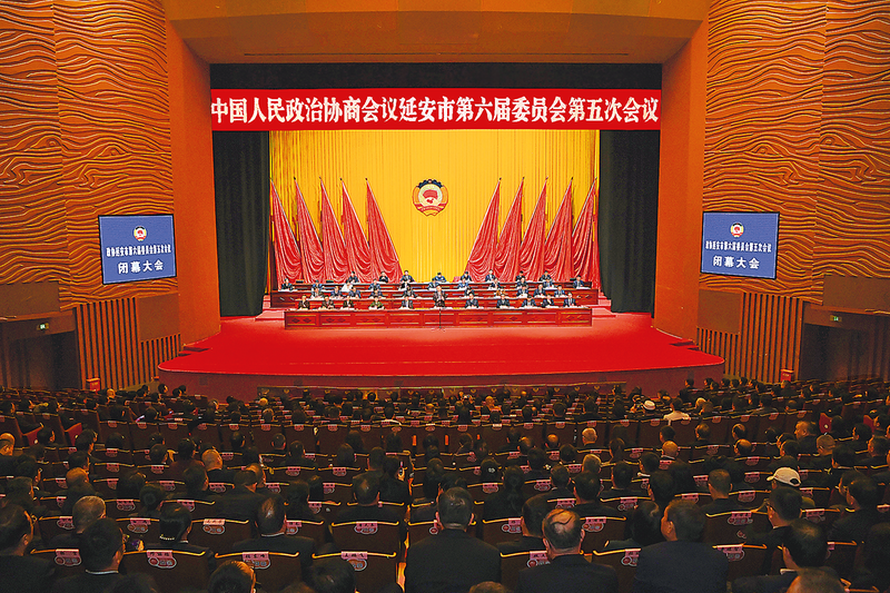 ● 二月四日下午,政协延安市第六届委员会第五次会议在延安大剧院胜利闭幕 记者 赵合欢 摄 本报讯(记者 王静)2月4日下午,在圆满完成各项议程后,政协延安市第六届委员会第五次会议在延安大剧院闭幕。