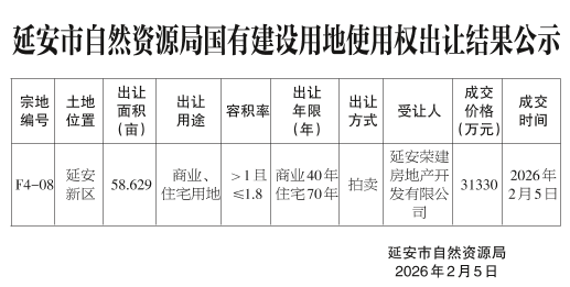 延安市自然资源局国有建设用地使用权出让结果公示