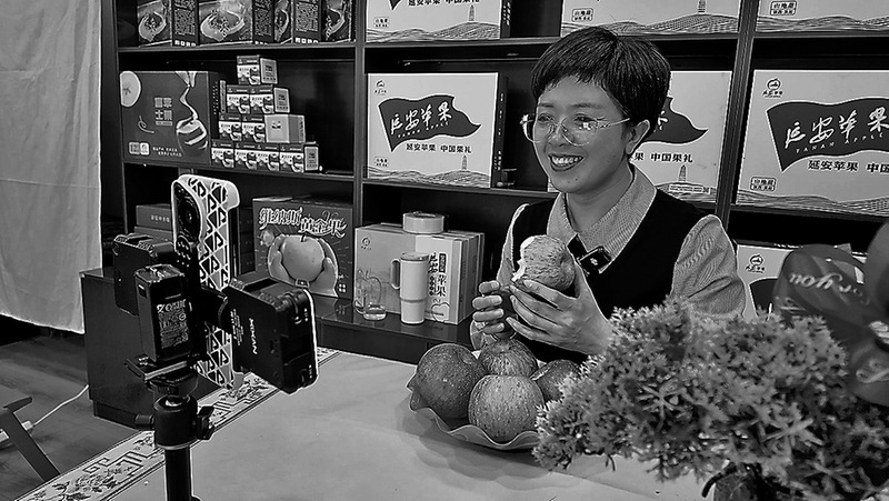 ● “陕北欢子”在直播间介绍红富士苹果 通讯员 温巧莉 摄 “家人们下午好,大家看到的这个红富士苹果,脆甜多汁、无农药残留,现在下单还能赶在春节前收到,送亲戚朋友特别有面儿。”腊月的吴起寒意正浓,“陕北欢子”对着手机屏幕热情吆喝。