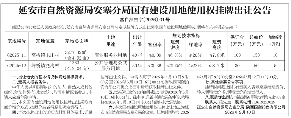 延安市自然资源局安塞分局国有建设用地使用权挂牌出让公告