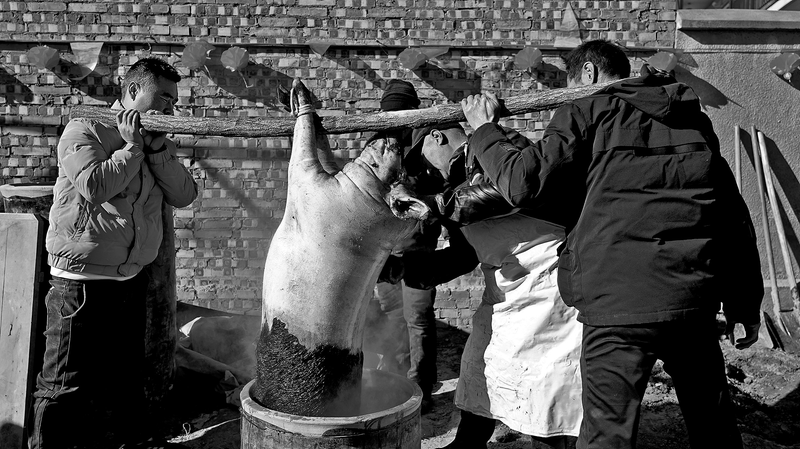 ● 杀猪宴烫猪毛 通讯员 赵登科 摄 “咚咚锵!咚咚锵!”2月7日,宜川县壶口镇岭玉村的锣鼓声震彻黄土高原,七零后土窑洞大院“陕北过大年”主题活动热闹启幕,近万名游客从全国各地奔赴而来,沉浸式体验地道的陕北年味。