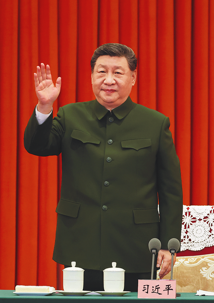 ● 2月10日,中共中央总书记、国家主席、中央军委主席习近平在北京八一大楼以视频方式检查全军战备值班和执行任务情况,亲切慰问有关部队,代表党中央和中央军委,向全体人民解放军指战员、武警部队官兵、军队文职人员、预备役人员和民兵致以诚挚问候和新春祝福。这是习近平向官兵挥手致意。 新华社记者 李刚 摄